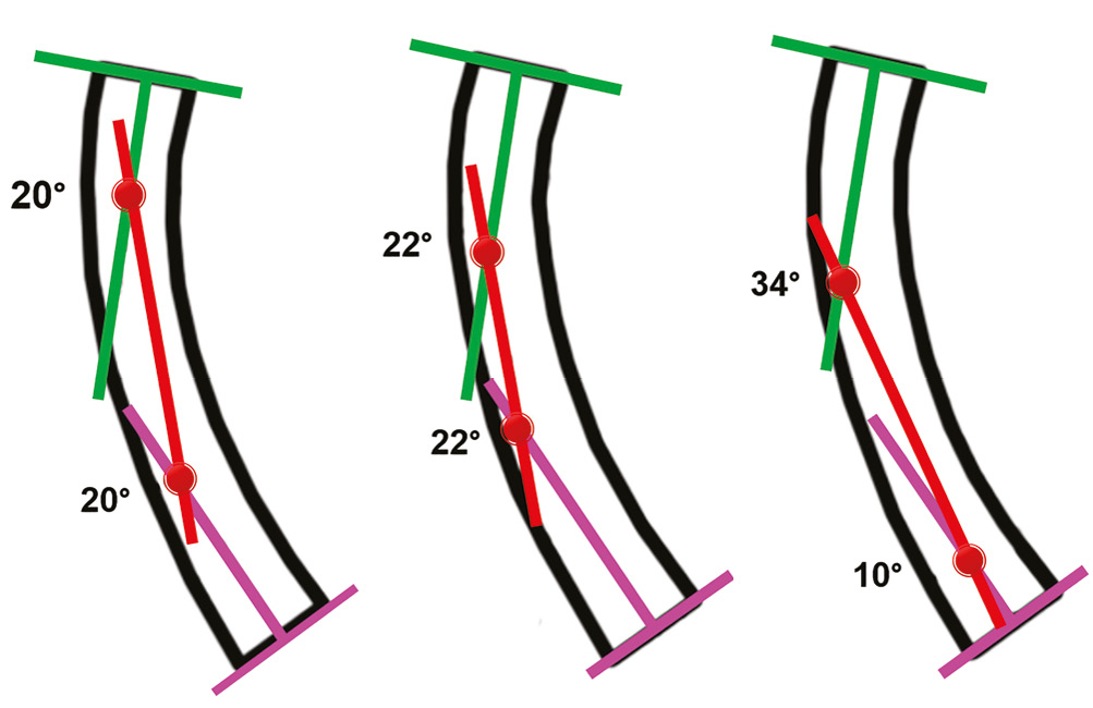 In sequential correction using a single hexapod, a choice must be made regarding which apex to start correction from, and two separate calculations are necessary. The correction period increases proportionally with the number of deformity apexes (See Table 2). Premature consolidation at the level of the apex «awaiting» correction is possible.
