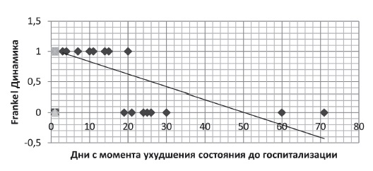 The statistical relationship of treatment outcomes with the prehospital pause duration was studied, i.e., with the timing of the development of the condition that led to the hospitalization of the patient; the term “pause” seems to us more convenient than the concept of “delay” adopted in the English literature [23].