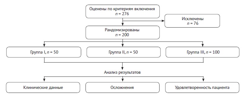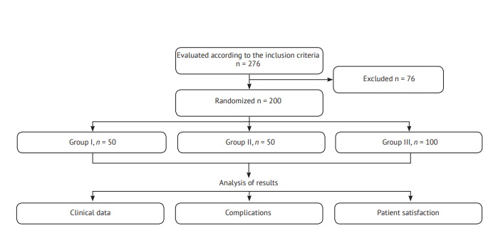 The study was conducted in the clinic of the R.R. Vreden National Medical Research Center for Traumatology and Orthopedics from April to December 2019. The study included 200 patients with end-stage deforming knee arthrosis who required primary uncomplicated total knee arthroplasty.