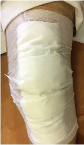 Fig. 4. View of the knee after total knee arthroplasty with a gauze dressing