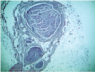 Рис. 3. Микрофотография глубокого малоберцового нерва и его ветвей. Окраска гематоксилином и эозином. Ув. ×40 / Fig. 3. Micrograph of the deep peroneal nerve and its branches. Staining with hematoxylin and eosin. Mag. ×40