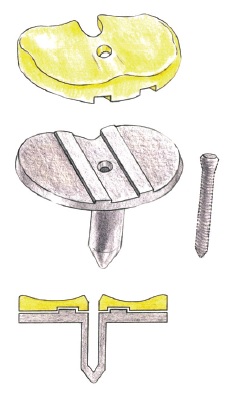 In the central type of press-fit insert fixation, the fixation of the insert in the tibial component is supplemented by the use of a central screw to stabilize the modular components (Fig. 7).