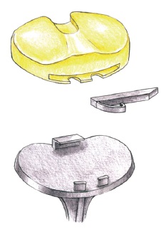 Peripheral fixation involves press-fit impaction of the polyethylene insert around the circumference of the tibial insert in the manner of a tight-fitting cap or plug (Fig. 6).