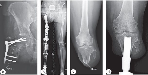 An additional concern is whether there is a minimum bone length to achieve stable osseointegration. There is no apparent consensus on what defines a short limb, but standard press-fit implants are 14 cm long. There are two strategies reported by two different groups. One strategy as reported by J.S. Hoellwarth et al. [56] is to lengthen a bone prior to osseointegration. In that study, 10 patients were lengthened by an average of 52 mm, requiring about a year from starting lengthening to the TOFA surgery. All patients achieved independent ambulation without any apparent compromise to implant stability, but the multiple surgeries and protracted period tempered patient satisfaction. An alternate option, also reported by J.S. Hoellwarth et al. [56], is simply directly performed TOFA for residual bones as short as 5-6 cm (Figure 3). They reported no association between residual bone length and post-TOFA reoperation rates, including such issues as aseptic loosening, periprosthetic fractures, or infections. A true minimum bone length remains uncertain, and greater experience will likely eventually help elucidate possible factors contributing to a potential limit.