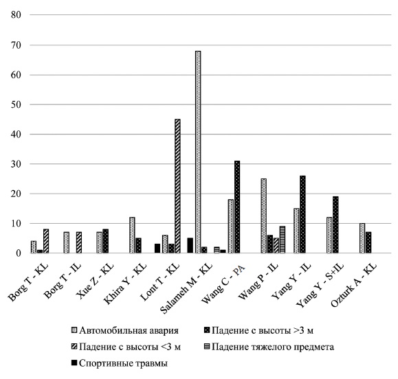 We analyzed the results of the surgical treatment of 540 patients with acetabular fractures, whose data are presented in the 12 publications selected for analysis (Table 1).