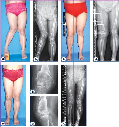 e, f, g, h — photograph and radiographs showed normal alignment of the lower limbs