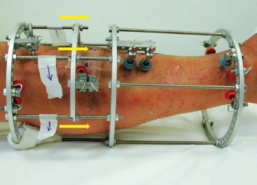 Figure 7. Picture showing the half-ring corresponding to the split fragment connected to the frame for progressive distraction