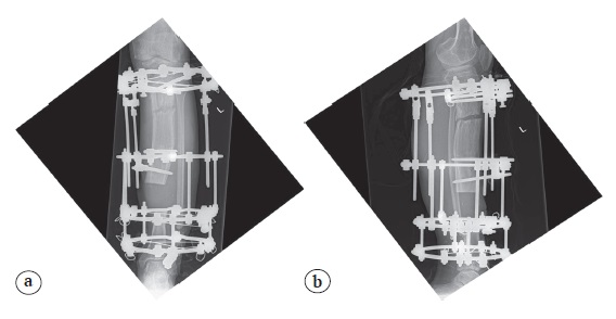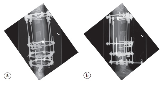 Among various complications related to treatment with the Ilizarov apparatus, we have mentioned joint stiffness [25]. This may have been a confounding factor in the approach to the second proximal tibial osteotomy for bone transport.