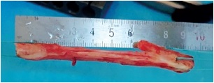 Fig. 4. Bone-tendon-bone graft view after preoperative measurements