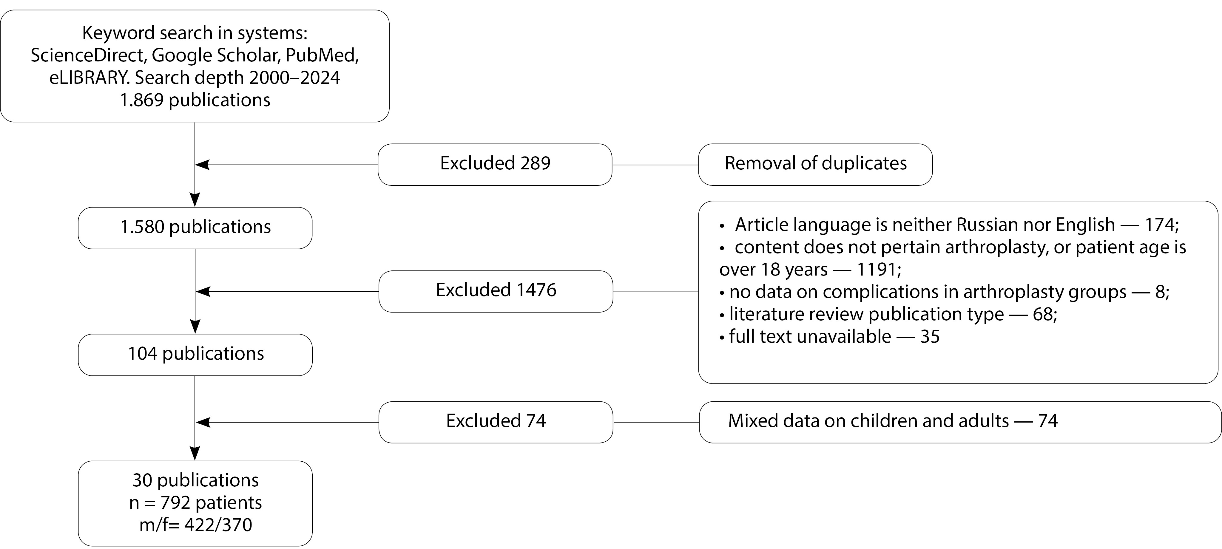 A literature search was performed in the Google Scholar, PubMed, ScienceDirect, and eLIBRARY electronic databases using the following keywords: “endoprostheses, tumors, children”, from 2000 to 2024.