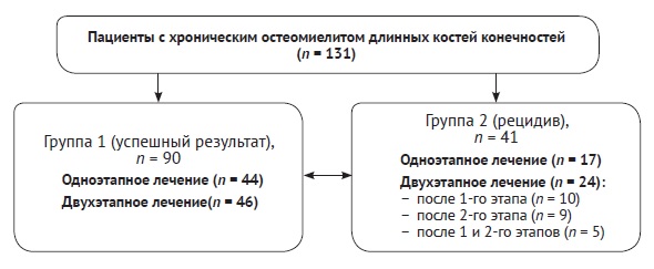 The retrospective study included 131 patients treated for chronic osteomyelitis in the Department of Purulent Osteology from 2009 to 2018.