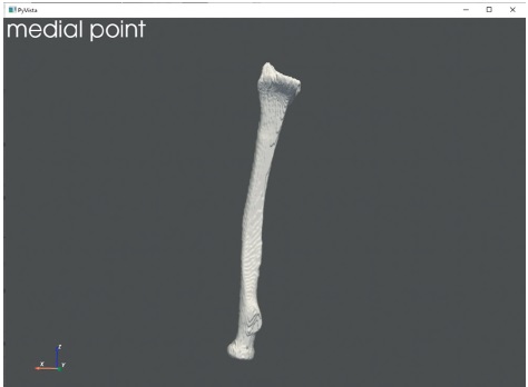 Upon launching the program, a window opens displaying the bone model (Figure 2). The bone model can be rotated by moving the mouse while holding the left button. To move the model parallel to the screen, the user should hold the shift key. The scroll wheel is used to scale.