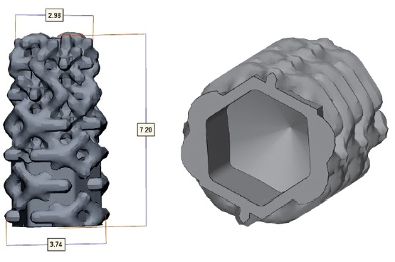 Рис. 1. Внешний вид и габаритные размеры титанового конусовидного 3D-имплантата