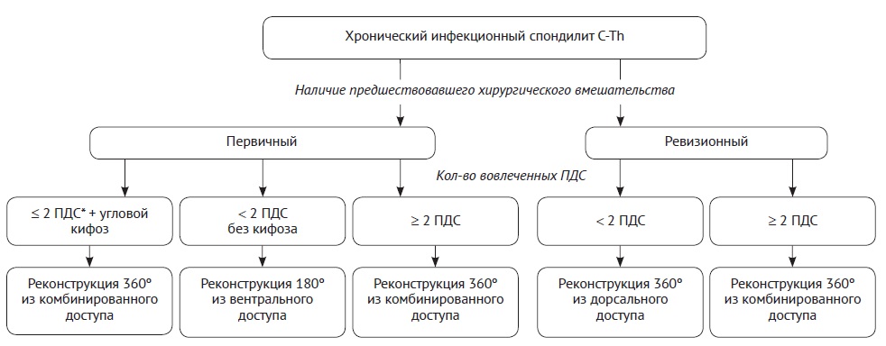 1) is it possible to algorithmize the surgical treatment of chronic infectious cervicothoracic spondylitis based on the extent of the lesion and previous surgical interventions?