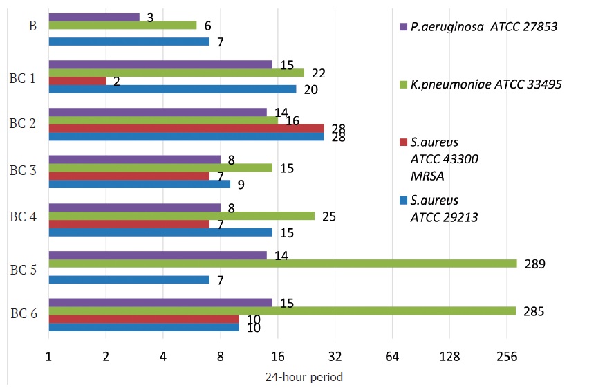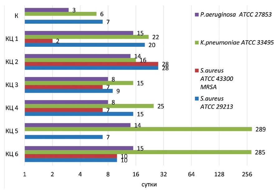 Figure 1. Duration of antimicrobial activity of bone cement samples against reference bacterial strains