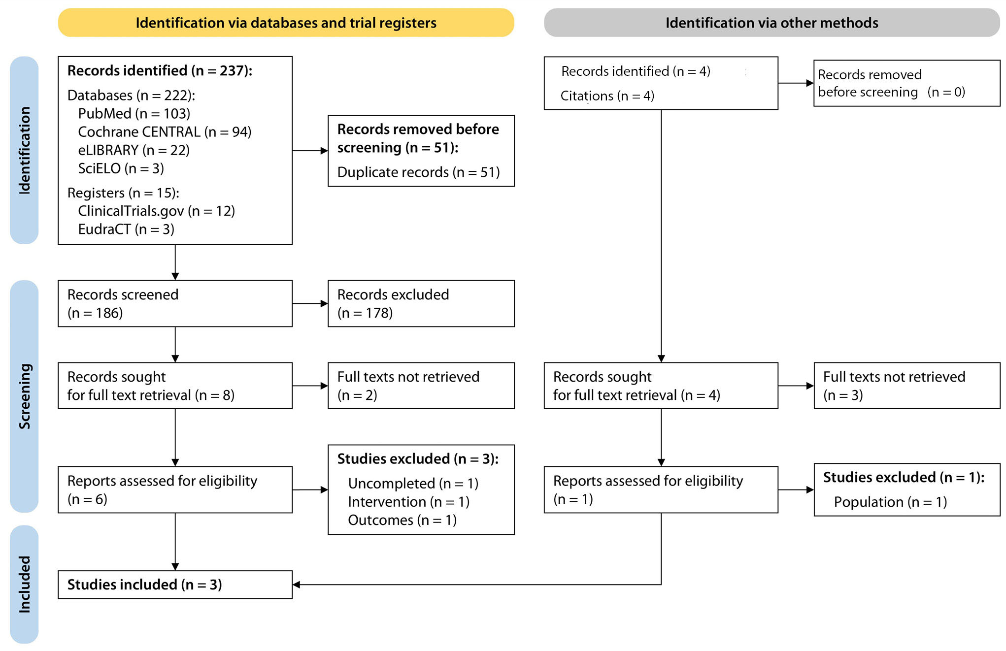 Following the screening process, three clinical trials [27, 28, 29] that met all inclusion criteria were selected; their general characteristics are presented in Table 3.