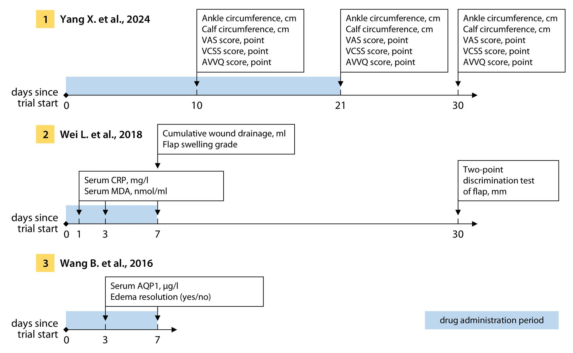 The aim of the systematic review – to summarize the clinical trial data on the efficacy and safety of systemically administered escin medications in the treatment of post-traumatic or post-operative soft tissue edema.