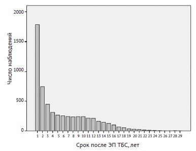 Figure 5. Distribution of revisions by time since the previous surgery