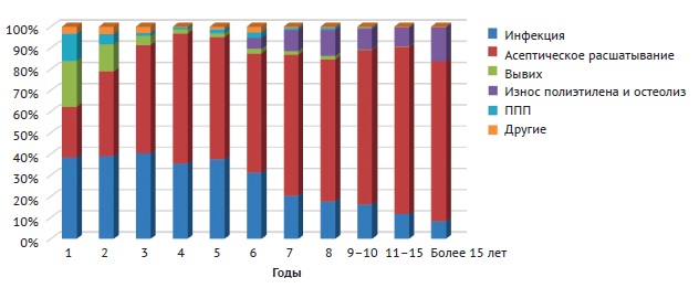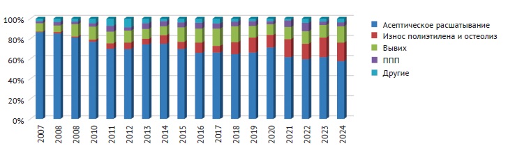 Figure 10. Dynamic changes in the structure of aseptic revision causes by year