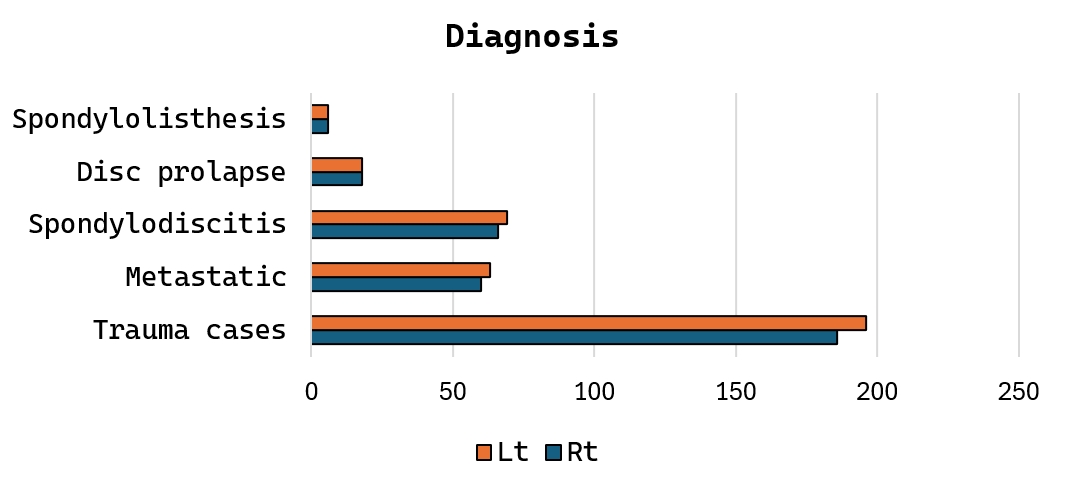 A prospective study was conducted on 90 patients aged 18 to 65 years with spinal pathologies, including fractures, metastatic diseases, infection, and degenerative diseases, from January 2024 to June 2024 at the Ain Shams University. We excluded any congenital deformities, such as congenital scoliosis and malformations, or revision surgery.