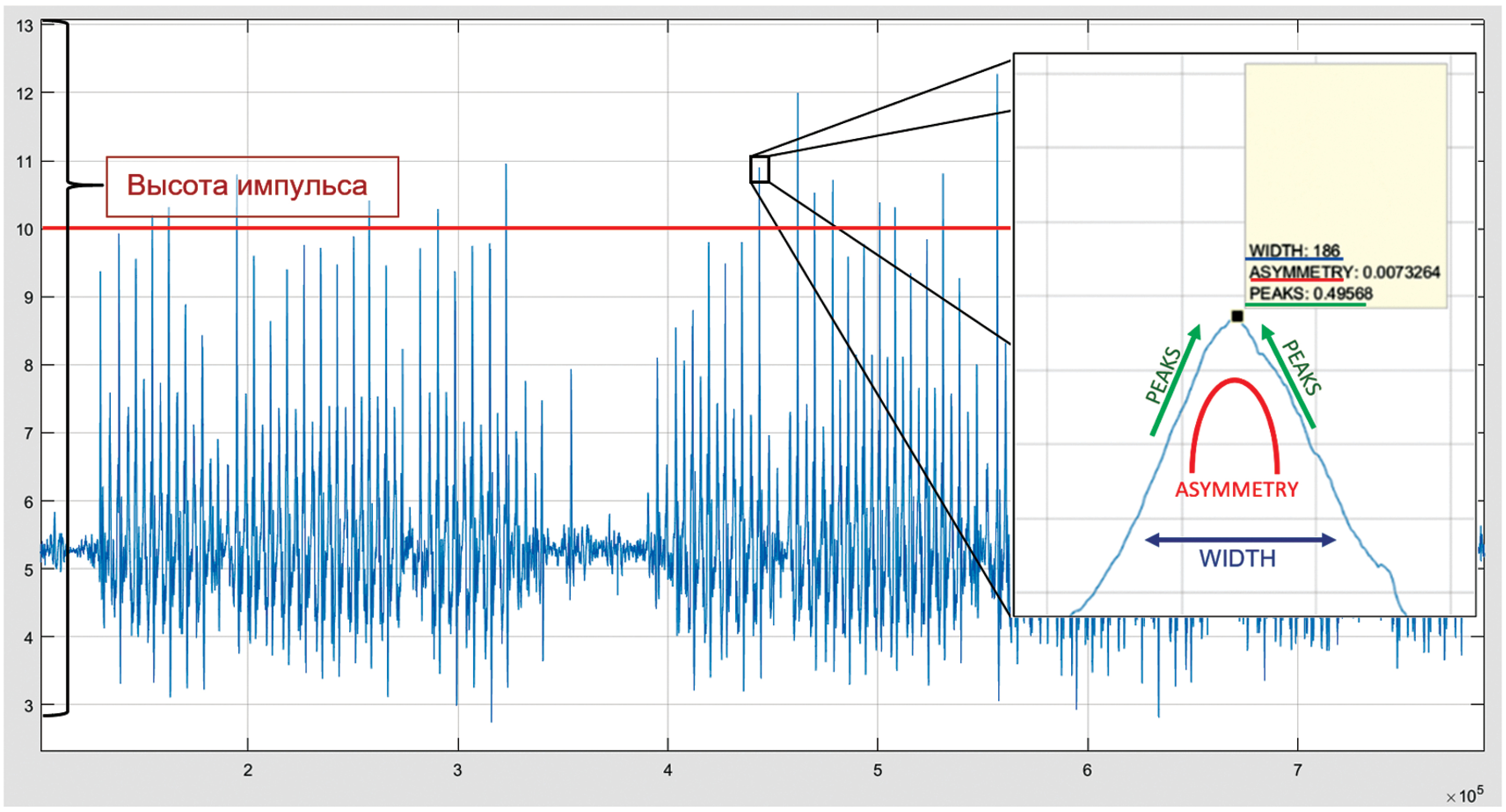 3) Width — ширина импульса, представляющая расшатывание или разрушение компонентов, пороговое значение 500.