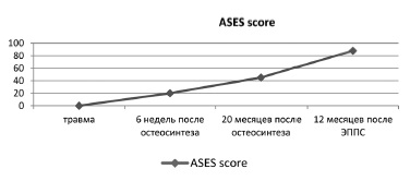 Subjective assessment of the left shoulder joint function according to the American Shoulder and Elbow Surgeons score (ASES) scale was performed at stage control examinations (Fig. 6).