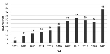 The number of ACL revision reconstructions performed at the Vreden Russian Scientific Center of Traumatology and Orthopedics from 2011 to 2021, constantly increased (except for 2019 and 2020), which reached 43 in 2021 (Fig. 2).