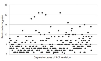 Thus, in recent decades, interest in ACL revision reconstruction has increased significantly in the presence of an increasing need for such interventions in clinical practice. Clinical experience gained in Vreden Russian Center of Traumatology and Orthopedics enabled analysis of ACL revision reconstructions using large data and highlighted the most relevant aspects.