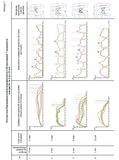 Table 5. Results of barodynamic and plantographic examination of 7 patients aged 6–13 y.o.