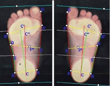 The coefficient of interlimb asymmetry of the foot shape was calculated by correlating the parameter value obtained when measuring one foot with the value of the contralateral foot for each of these parameters. Here, the lower value was always divided by the larger one for a more demonstrational comparison of the obtained results when examining different patients (Table 3).
