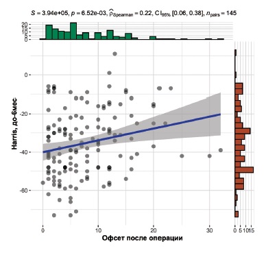 Fig. 4. Correlation between offset after surgery and joint function changes on the Harris Hip Score