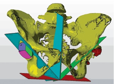 A.V. Tsybin et al. registered an invention, ASPID descriptive system, that allowed to increase the accuracy of acetabular deformity analysis and to develop a verified approach to the surgical treatment [4]. This method implies the estimation of displacement degree in CT scans; the diagnostics is based on three criteria: localization (by acetabular walls), degree of displacement and continuity of pelvic ring (disrupted or integer). Stage-by-stage identification of deformity components (degree of displacement of separate acetabular walls and center of rotation) and the principle of assessment of acetabular walls displacement are the main differences of our method. CT 3D reconstruction models, i.e., images that are cleared from noise and implants and visualized by Hounsfield’s scale between 200 and 400 HU, are used for analysis by the contrast with A.V. Tsybin’s invention [4].