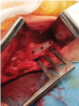 Рис. 2. Хирургическое моделирование дефектов костной ткани в диафизе бедренной кости кролика
