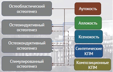 Рис. 8. Механизмы воздействия костнопластического материала на процессы регенерации кости