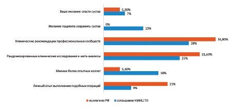 На вершине доказательной пирамиды находятся метаанализы [6], на основе которых и формулируются гайдлайны или клинические рекомендации. В нашей стране в соответствии с законодательством клинические рекомендации уже практически обязательны к исполнению, в то время как во многих других странах врач гораздо более свободен в выборе лечения. Например, K.P. Meiyappan с соавторами изучили вопрос о том, как строго ортопеды США в своей практике соблюдают рекомендации AAOS [7]. При анализе 1096 визитов пациентов с первичным остеоартритом к ортопедам оказалось, что: