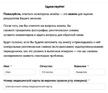 Perhaps the problem of low coverage of patient monitoring after arthroplasty will be solved through modern technologies. The advantage is the simplicity for the patient, for which "archaic" but more understandable web forms were preferred in the pilot project of the Vreden National Medical Research Center of Traumatology and Orthopedics. An important feature is the direct transmission of the results of surveys and control X-rays to the operating physician.