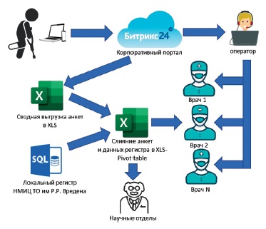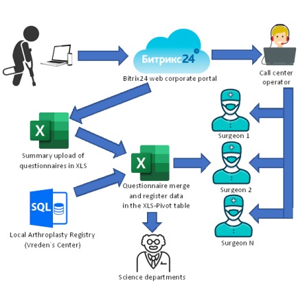 Fig. 2. Scheme of remote monitoring patients after arthroplasty at the Vreden National Medical Research Center for Traumatology and Orthopedics