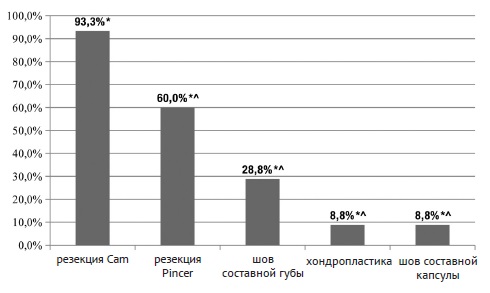 Установлено, что только 3 (6,60±0,07%) опрошенных считают, что им удается достичь запланированных результатов операции, подавляющее большинство респондентов (93,30±0,03%) сообщили о том, что не всегда получается добиться желаемых исходов (p<0,05). Ожидаемо не всегда достигают поставленных задач врачи, выполняющие менее 5 вмешательств в год.