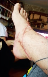 The aim of the study is to show a rare clinical case of a patient with a traumatic defect of the medial ankle and to describe the method of its reconstruction.