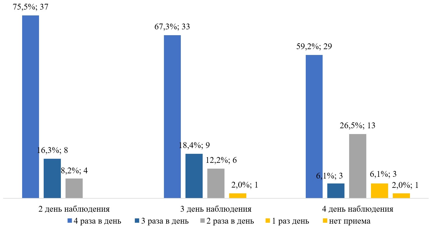 Рис. 4. Кратность приема кеторолака со 2-го дня до выписки
