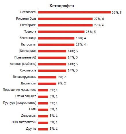 Рис. 6. Распределение побочных эффектов на фоне приема кетопрофена