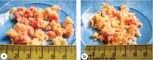 Fig. 2. Production of bone chips: a — for acetabular IBG; b — for femoral IBG prepared with a bone mill